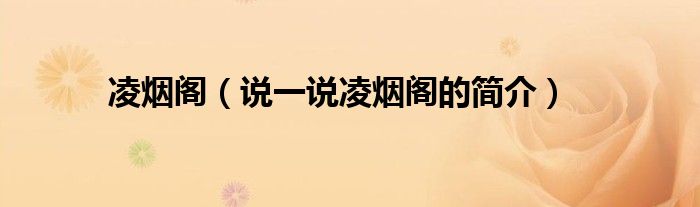 夏弥来为大家解答以下的问题,凌烟阁,说一说凌烟阁的简介,现在让我们一起来看看吧!