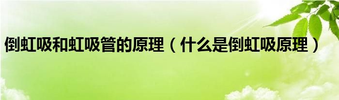 倒虹吸和虹吸管的原理【什么是倒虹吸原理】