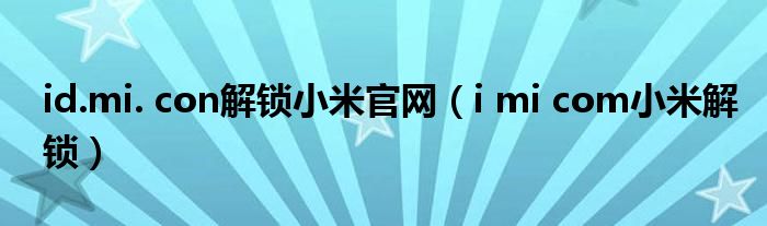关于id.mi. con解锁小米官网,i mi com小米解锁这个很多人还不知道,今天菲菲来为大家解答以上的问题,现在让我们一起来看看吧!