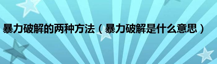 暴力破解的两种方法【暴力破解是什么意思】