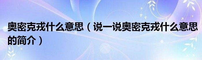 奥密克戎什么意思【说一说奥密克戎什么意思的简介】