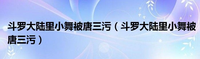 斗罗大陆里小舞被唐三污【斗罗大陆里小舞被唐三污】