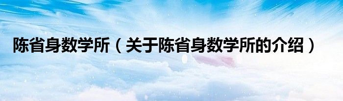 陈省身数学所【关于陈省身数学所的介绍】