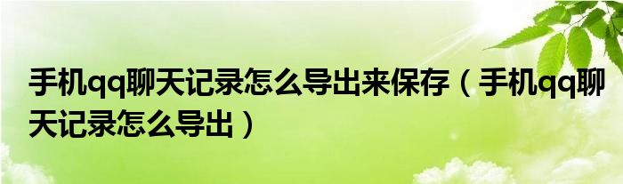 手机qq聊天记录怎么导出来保存【手机qq聊天记录怎么导出】