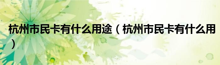 杭州市民卡有什么用途【杭州市民卡有什么用】