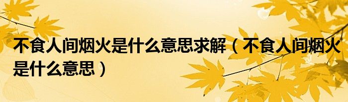 不食人间烟火是什么意思求解【不食人间烟火是什么意思】