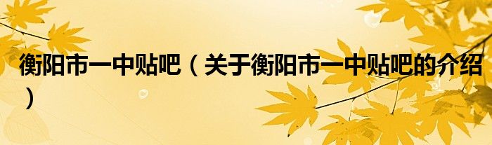 衡阳市一中贴吧【关于衡阳市一中贴吧的介绍】