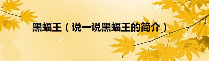 夏弥来为大家解答以下的问题,黑蝠王,说一说黑蝠王的简介,现在让我们一起来看看吧!