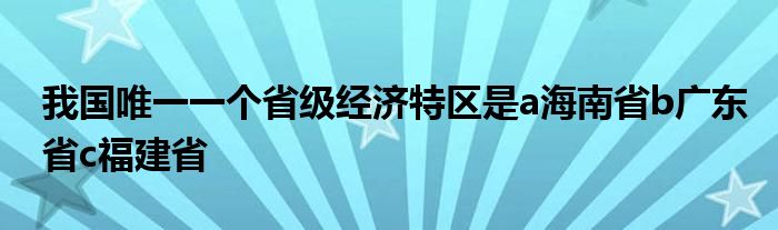 我国唯一一个省级经济特区是a海南省b广东省c福建省