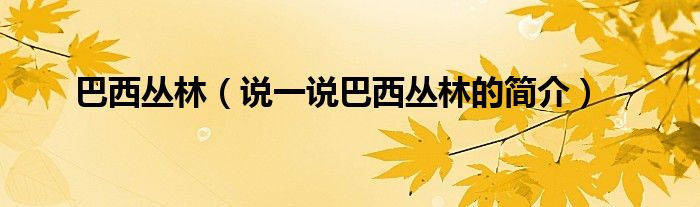 夏弥来为大家解答以下的问题,巴西丛林,说一说巴西丛林的简介,现在让我们一起来看看吧!