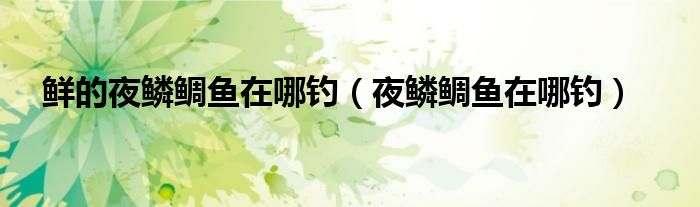 鲜的夜鳞鲷鱼在哪钓【夜鳞鲷鱼在哪钓】
