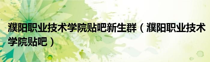 濮阳职业技术学院贴吧新生群【濮阳职业技术学院贴吧】