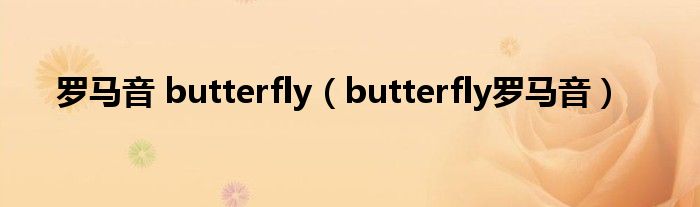 最佳答案 关于罗马音 butterfly,butterfly罗马音这个很多人还不知道,今天菲菲来为大家解答以上的问题,现在让我们一起来看看吧!1、Butter Fly作...