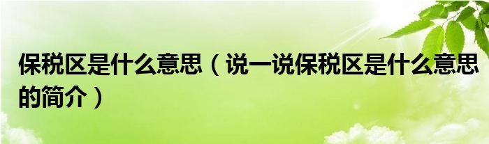 保税区是什么意思【说一说保税区是什么意思的简介】
