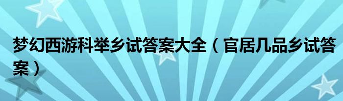 梦幻西游科举乡试答案大全【官居几品乡试答案】
